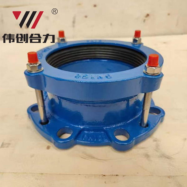 法兰松套伸缩接头由本体、压盖、密封圈和紧固件组成,它采用和压盖松套伸缩接头相同的密封原理,连接方式一端为法兰连接,另一端为承插连接,适合阀门等设备与管道的连接。连接的同时能补偿管道的轴向位移及一定量的挠曲和偏心,从而保护阀门等设备。承插口同样适合与钢管、铸铁管、球墨铸铁管、PAC管、ABS管等连接。